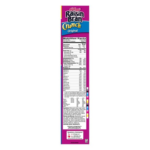 Kelloggs raisin bran crunch cereal nutrition fact information nutrition label ingredients and nutrition information and all about kelloggs raisin bran crunch cereal product informations.