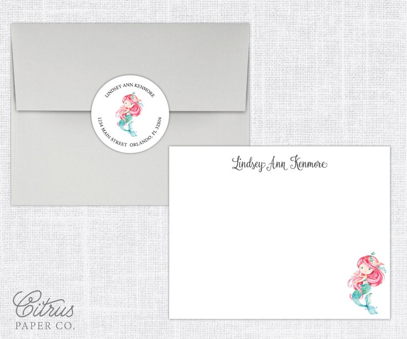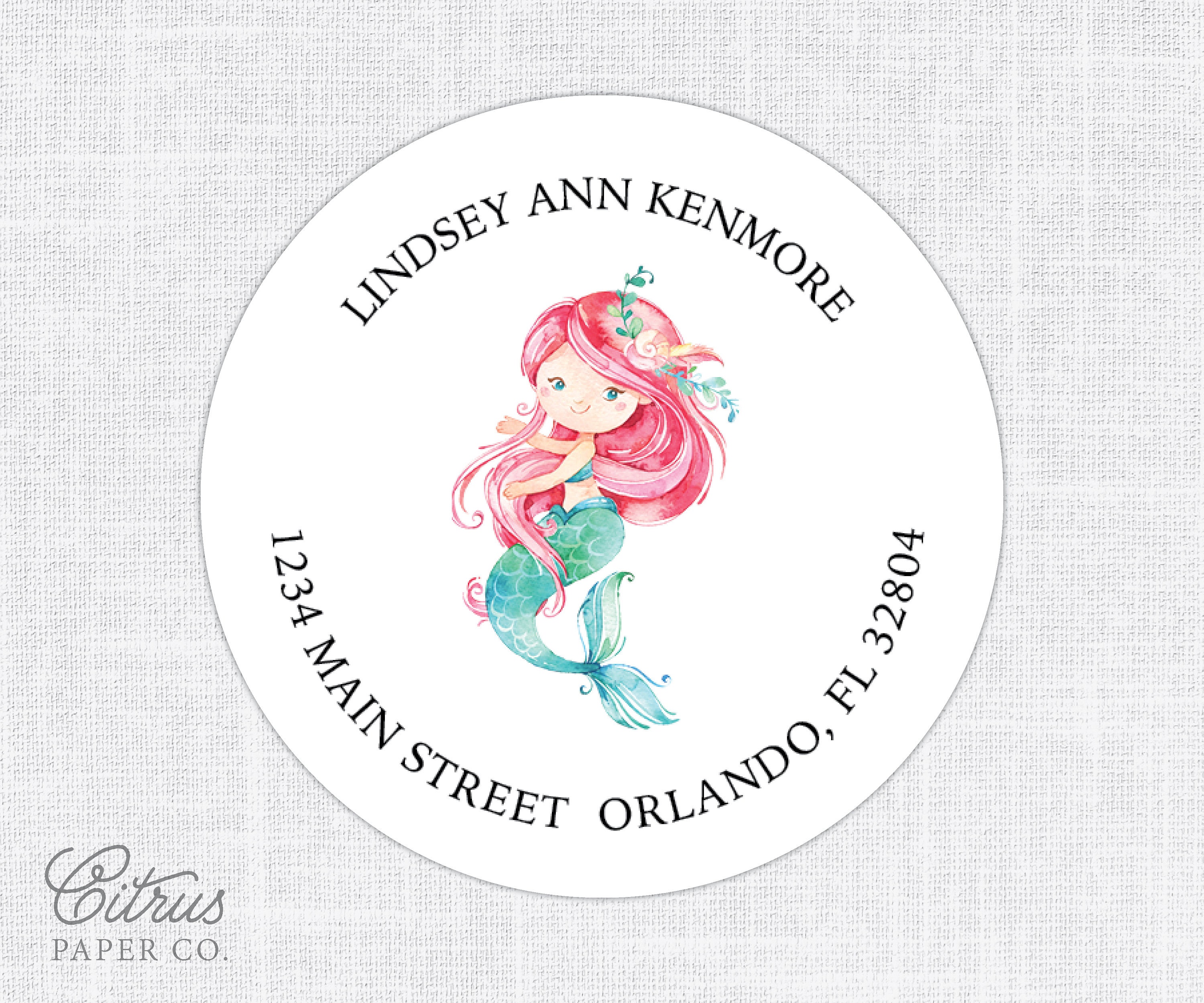 Mermaid Return Address Label 2 Round Sticker Tag Etsy