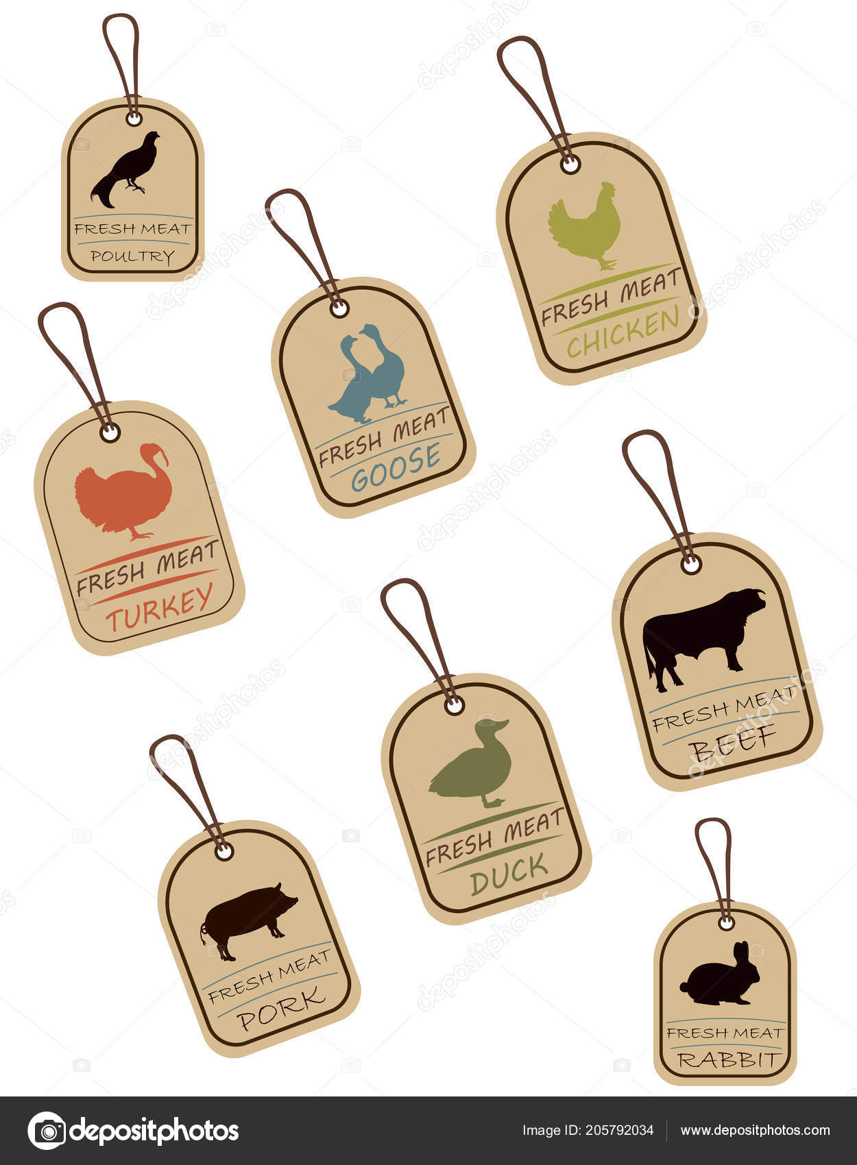 String Tags Meat Labels Label Illustration Chicken Duck Pork Rabbit