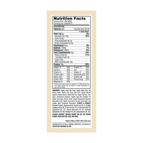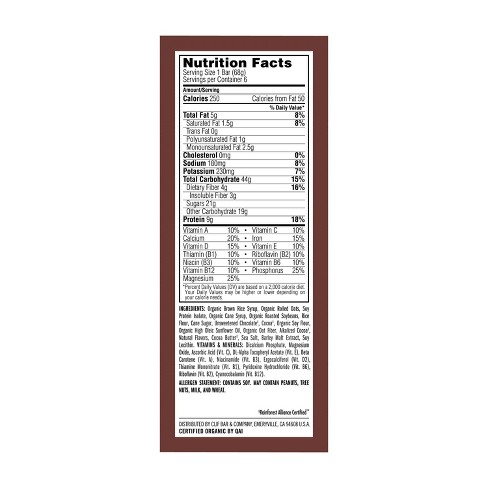 Calories carbs fat protein fiber cholesterol and more for energy bars energy bar chocolate almond fudge clif bar. Head to the diet generator and enter the number of calories you want. Crunchy peanut butter wholesome organic ingredients.