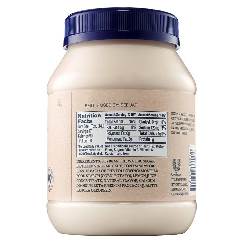 Hellmans mayonnaise nutrition label. We are on a mission to use 100 cage free eggs in all of our products and are pleased to say we are well on our way. Americas 1 mayonnaise is made with real simple ingredients. Contains a small amount of edta to protect quality.