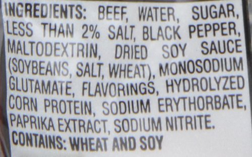 Jerky nutrition labels create and generate your own labels. Beef water salt contains 2 or less of corn syrup dextrose flavors sodium erythorbate lactic acid starter culture sodium nitrite bha bht citric acid colors caramel red 3 safflower oil treated with a solution of potassium sorbate to ensure freshness. Its one of the few grass fed beef jerky brands that uses organic tamari instead of gmo soy sauce all organic spices and no preservatives or nitrites.