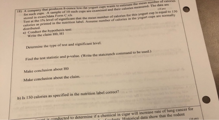 18 A Company That Produces 8 Ounce Low Fat Yogurt Chegg Com