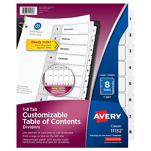 Avery 8 Tab Ready Index Classic Black White Table Of Contents