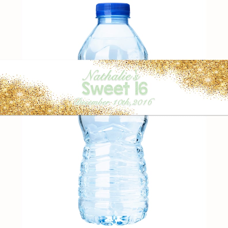 Gold Faux Glitter Water Bottle Label Glitter Birthday Water Etsy