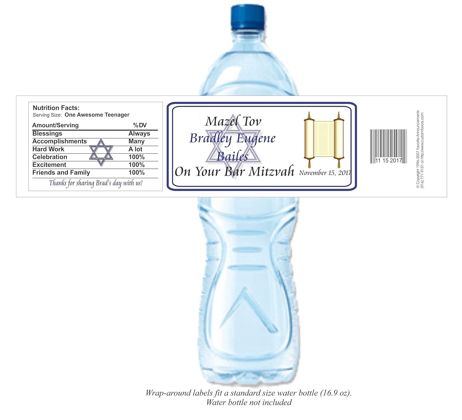 Amazon Com Bat Or Bar Mitzvah Personalized Water Bottle Labels