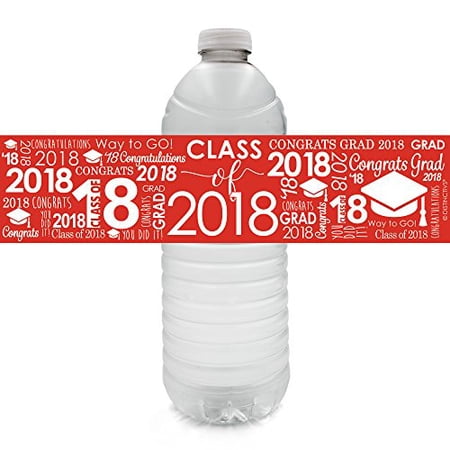 2018 Graduation Water Bottle Labels 24ct Red Class Of 2018