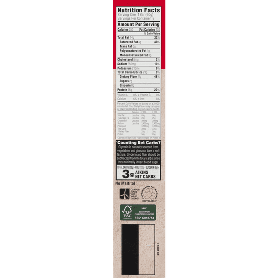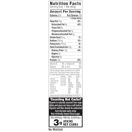 Atkins bar nutrition label. Nutrition bars are a great example. Our new improved products have a shorter simpler ingredient label that is easier to read and understand but feature the same great taste and nutrition that you expect from atkins. Chocolate peanut butter bar.