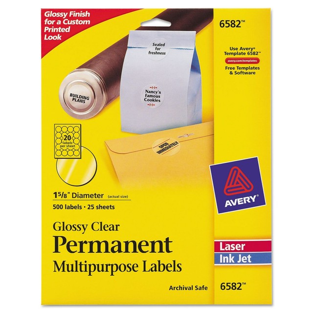 Avery Glossy Clear Permanent Multipurpose Round Labels 1 625 Inch