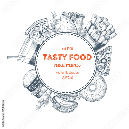 Vector Fast Food Illustration Junk Food Frame Illustration Menu