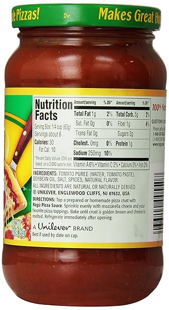 Nutrition facts and information for pizza sauce. RagĂș homemade style pizza sauce preserves the perfect mix of tomatoes and spices for a sweet and savory base on your next pie. Roma style pizza sauce.