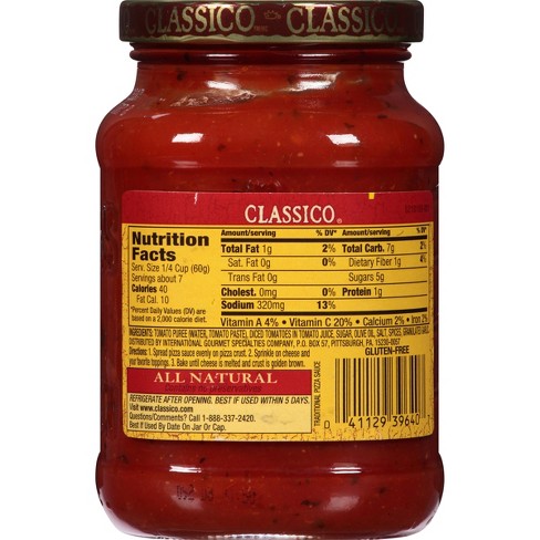 Available in 14 oz. For your convenience we have provided nutrition facts sheets for some of our most popular products. Homemade style pizza sauce.