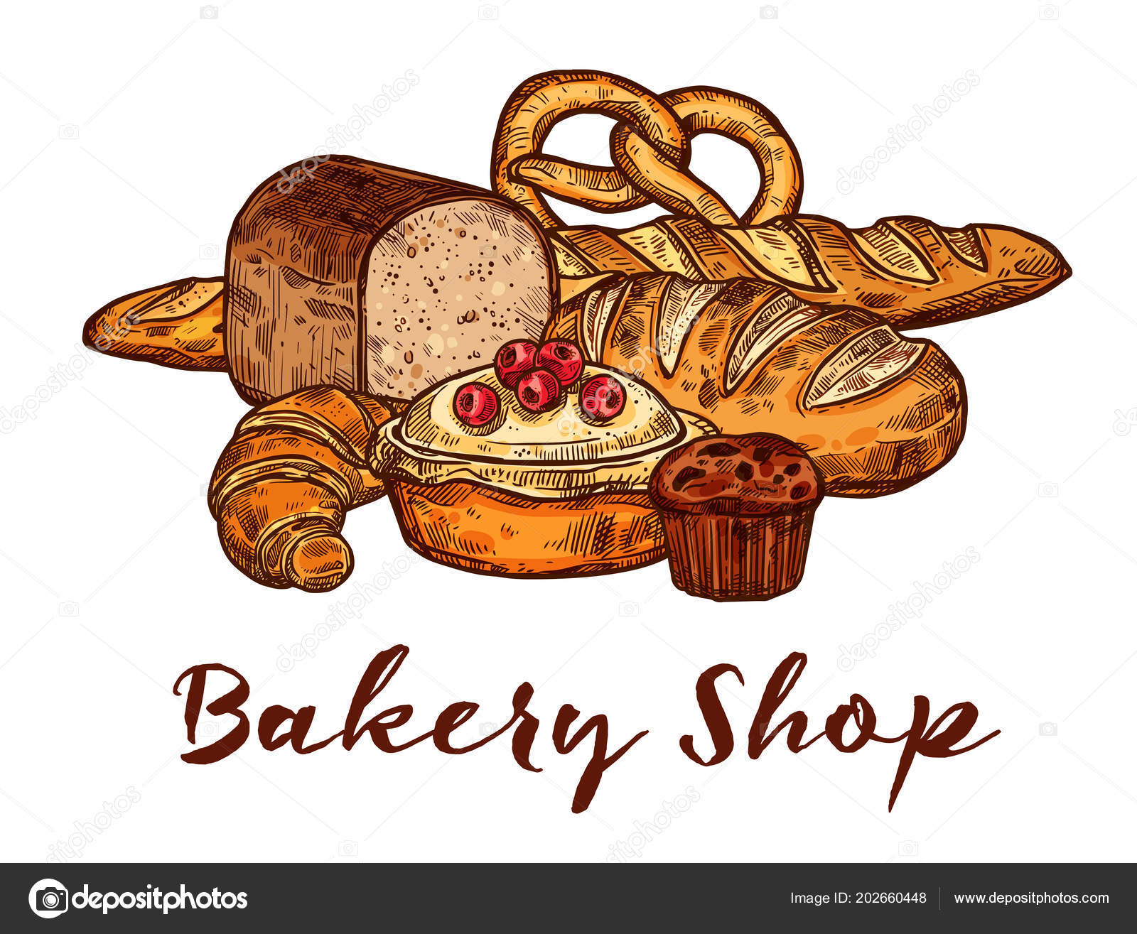 Bakery Shop Sketch Of Wheat Bread And Pastry Food Stock Vector