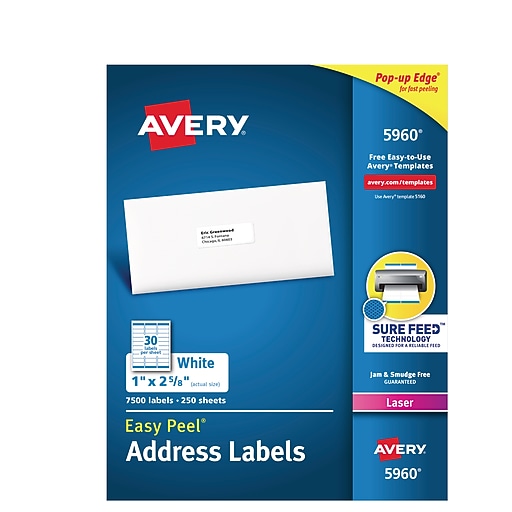 Avery Laser Address Labels With Easy Peel 1 X 2 5 8 White 7 500