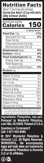 Wonderful pistachios nutrition label. Want to use it in a meal plan. 68 fat 18 carbs 14 protein. Wonderful pistachios is americas no.