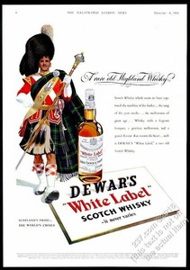 1954 Dewar S White Label Scotch Whisky Highlander Art Vintage Print