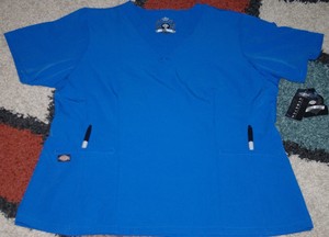 Dickies Black Label Soft V Neck Scrub Top 4 Way Stretch Royal Sz 2x
