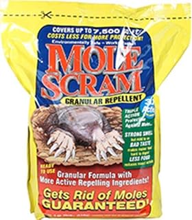 Mole scram is a granular organic biodegradable environmentally safe mole repellent that is guaranteed to keep moles out of your prized gardens yards and landscapes while not being offensive to humans. Mole scram professional is an organic granular repellent used to reduce and eliminate moles from your lawn. Mole scram is fully backed by epics 100 guarantee.