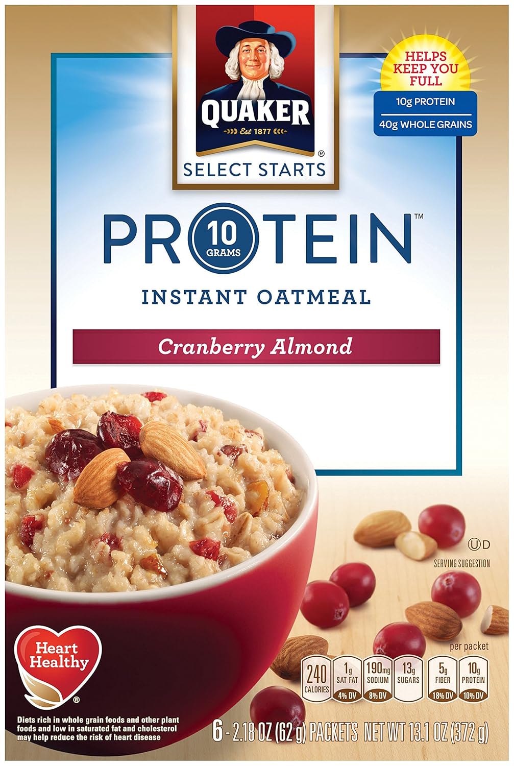 Quaker Instant Oatmeal Select Starts Protein Cranberry Almond Breakfast Cereal 6 Packets Per Box