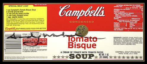 Original Hand Signed Campbell S Tomato Bisque Soup Label By