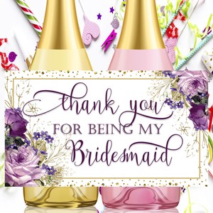 Set Of 8 Wedding Wine Bottle Labels Bridesmaid Mini Champagne