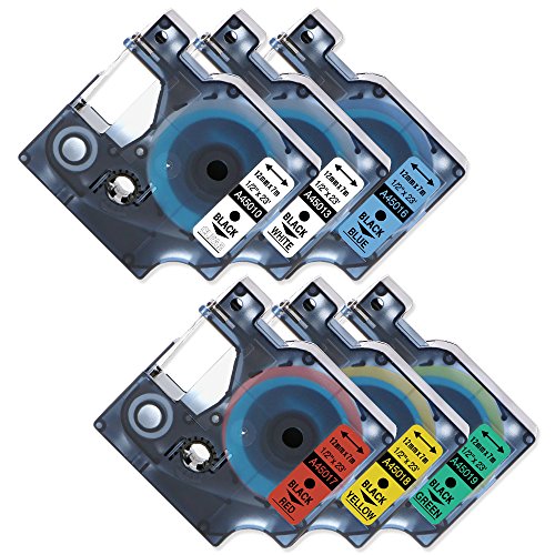 6 Pack Label Tapes Compatible Dymo D1 Tape 45010 45013 45016 45017