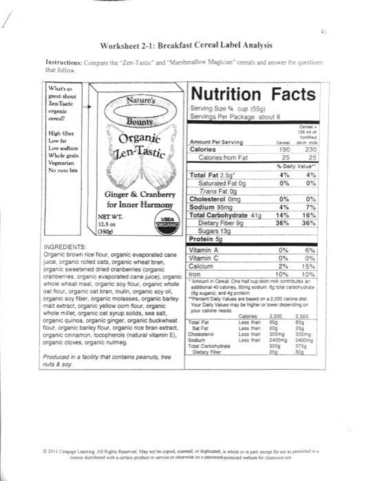 Solved Worksheet 2 1 Breakfast Cereal Label Analysis Ins