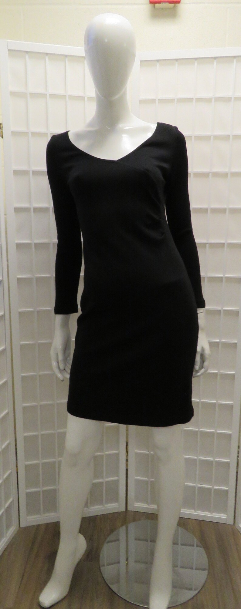 St John Black Label Black Knit Mock Wrap Dress W Plunging V Etsy