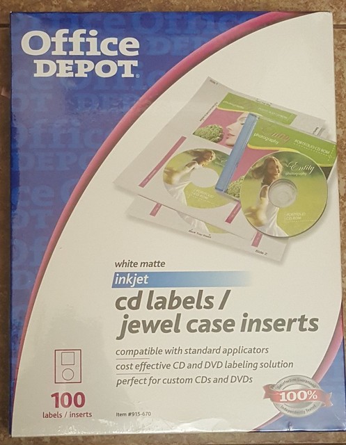 Office Depot White Matte Inkjet Cd Labels Jewel Case Inserts 100