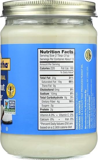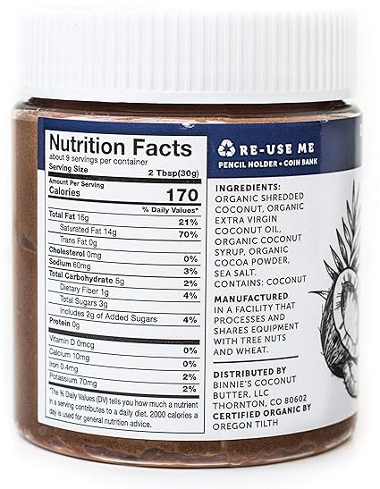 Our products are 100 plant made non gmo and trans fat free. One tablespoon of coconut butter has about 2 grams of dietary fiber. 09 milligram iron 5 percent dv 06 milligram vitamin c 1 percent dv 10 milligrams calcium 1 percent dv.