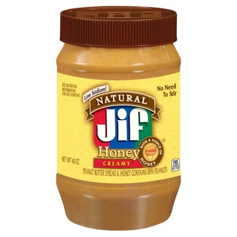 Natural creamy peanut butter spread contains 90 peanuts. Jif natural peanut butter spread and honey. Natural crunchy peanut butter spread contains 90 peanuts.