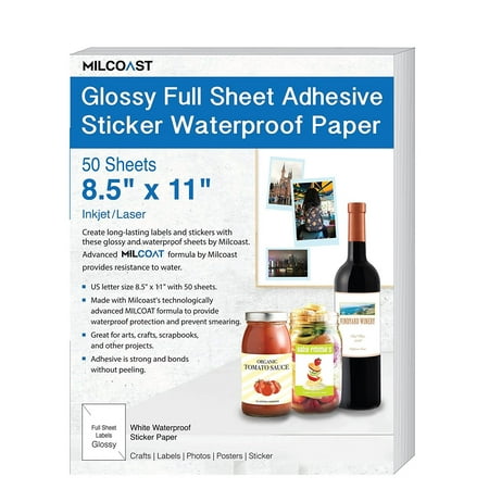 Milcoast Glossy Full Sheet 8 5 X 11 Adhesive Waterproof Photo