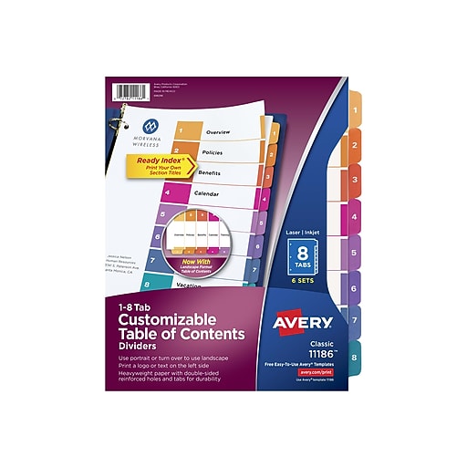 Avery 8 Tab Ready Index Multicolor Table Of Contents Dividers 6