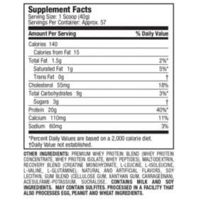 Muscletech premium whey protein is a dietary supplement sold as a protein rich shake for those individuals who want help recovering from arduous workouts. If you need a protein to get you from your workout to the office or to take along with you on your errands this is the protein for you. 2000g nutrition facts similar.