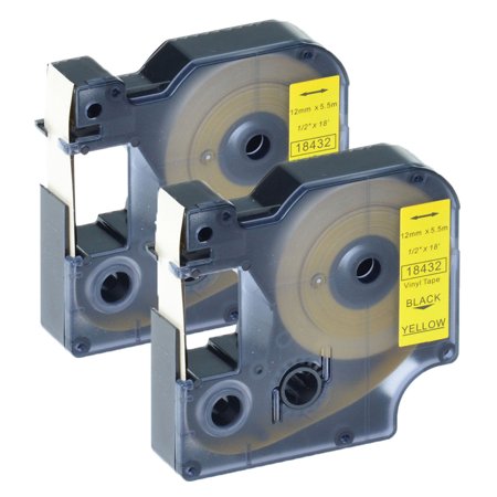 Greencycle 2pk 12mm 5 5m Black On Yellow Vinyl Label Tape For Dymo