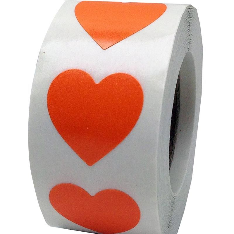 2 Inch Fluorescent Orange Heart Stickers 500 Labels On A Roll For