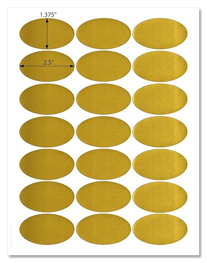Shiny Gold Foil 2 5 X 1 37 Inch Oval Labels For Laser Printers With Template And Printing Instructions 5 Sheets 105 Labels Go25