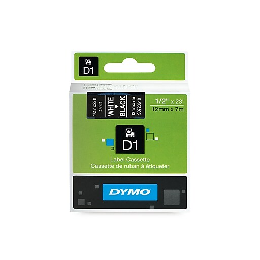 Dymo 45021 D1 Label Tape Cartridge 1 2 Inch X 23 Feet White Black