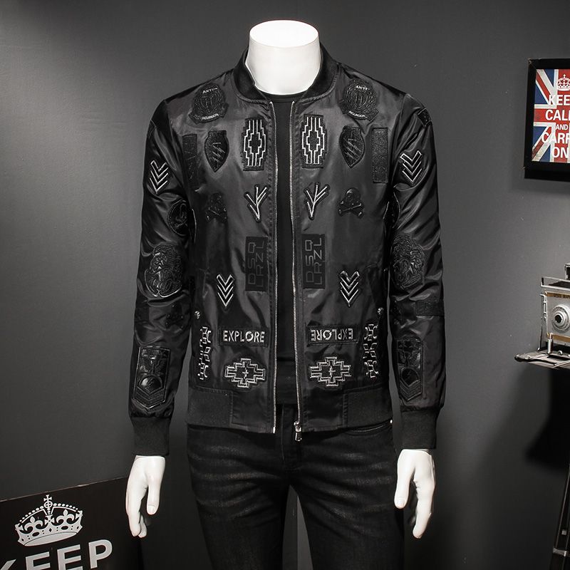 2019 Men S Embroidered Label Leather Jacket 2018 Autumn New Badge