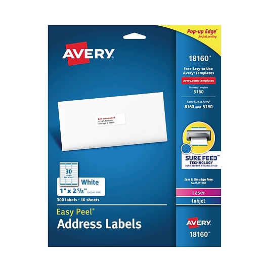 Avery Easy Peel Address Labels 300 Labels 18160 Avery Com
