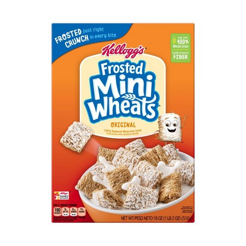 Kelloggs frosted mini wheats little bites original cereal. Crafted with ten layers of wheat and topped with frosting they help you feel full and ready to tackle whatever the day brings. Mini wheats cereal nutrition information.