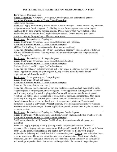 This is a working list and will be updated on a regular basis as more herbicides become registered for use in turfgrasses. For more than half a century atrazine has been a mainstay of corn sorghum and sugar cane farmers for its proven control of a broad range of destructive weeds. Atrazine 4l herbicide controls many annual and broadleaf grass weeds.