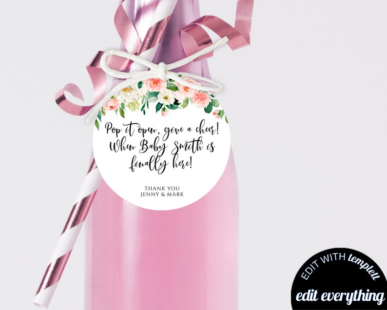 Pink Floral Baby Shower Champagne Favor Tags Baby Shower Favor Etsy