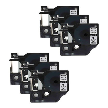 Greencycle 6pk 9mm 7m S0720680 Black On White Label Tape For Dymo D1