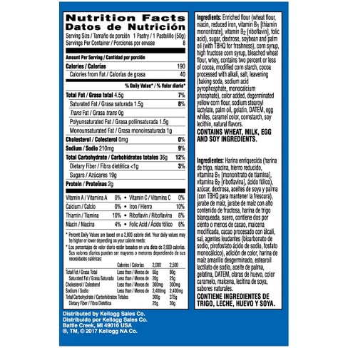 The filling frosting and sprinkles that dazzle our taste buds and make us dance with delight. It easy to assume that when you read that a serving size of pop tarts is 200 calories each individually wrapped package has 200 calories between the two pastries. View full nutrition facts panel label kellogg s pop tarts 16 count toaster pastries bundle pick 3 com view full nutrition facts panel label.
