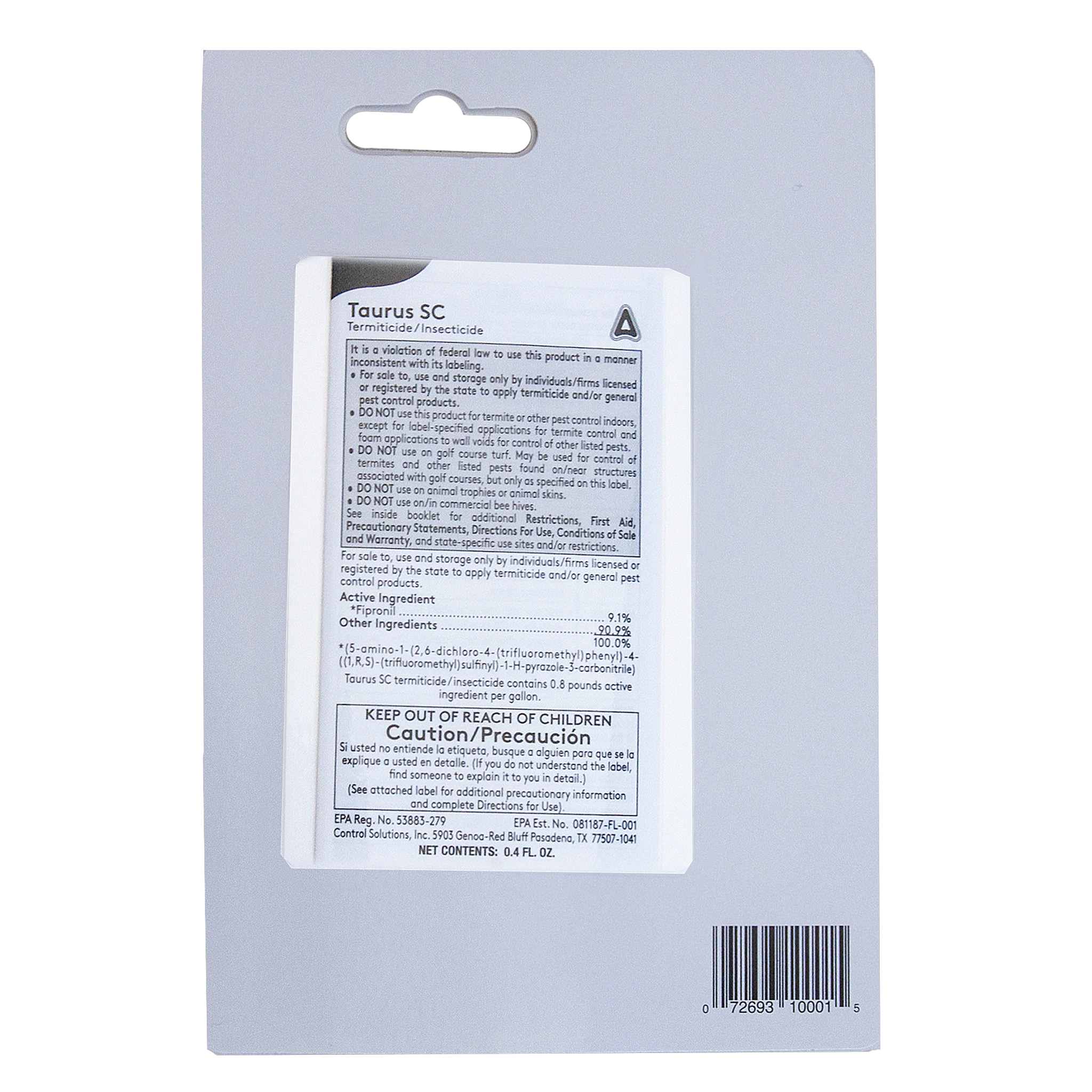 Taurus sc is a water based suspension concentrate of 91 fipronil for pre and post construction termite applications and to control other listed perimeter pests. It contains 91 percent fipronil the active ingredient thats used in various liquid and foam insecticides. Si usted no entiende la etiqueta busque a alguien para que se la explique a usted en detalle.
