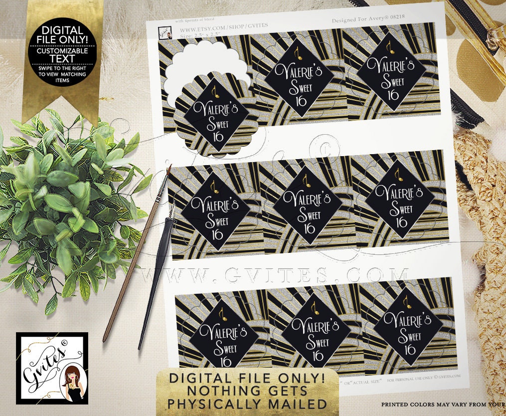 Great Gatsby Black Gold Cupcake Toppers Sweet 16 Birthday