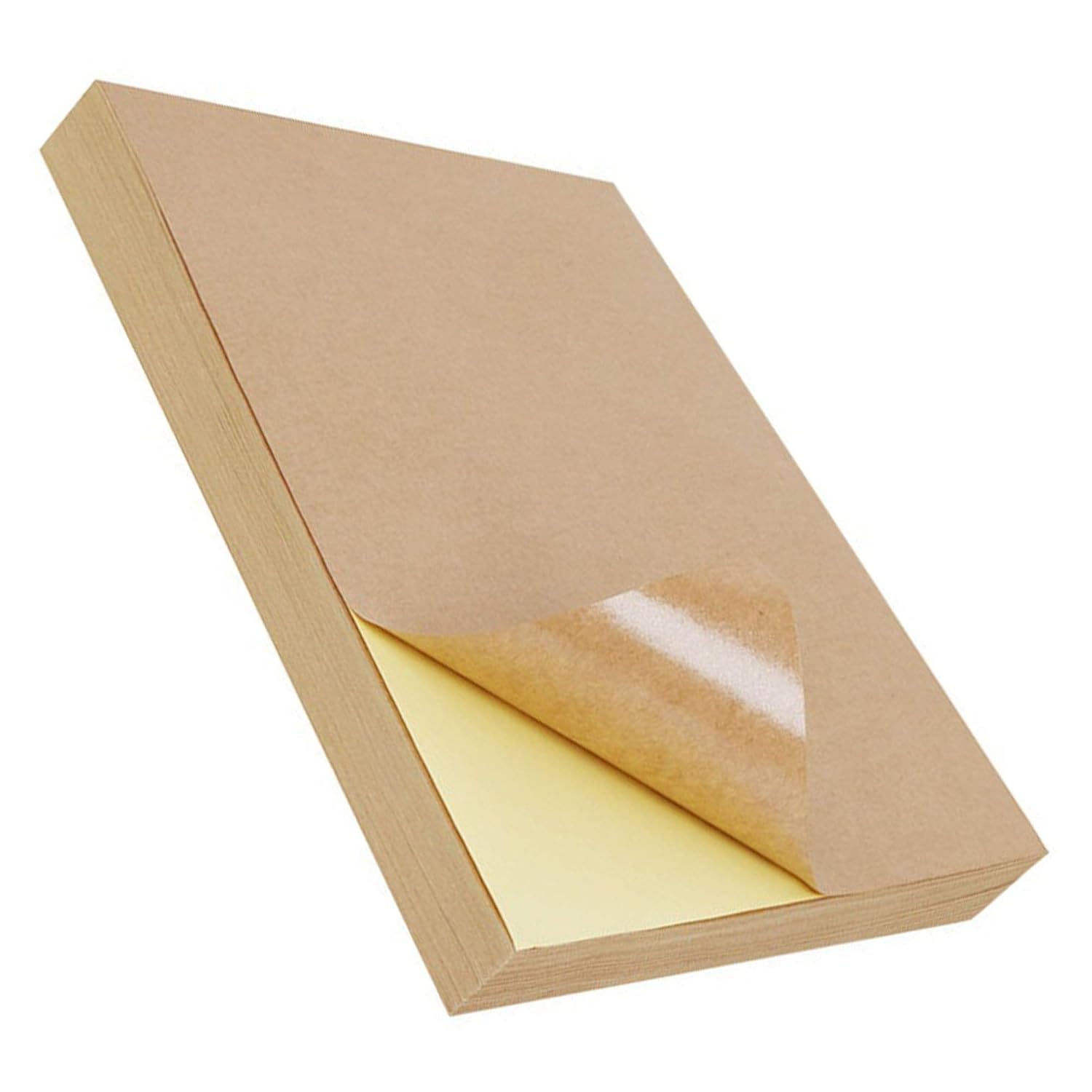 100 Sheets Lot A4 Size Blank Kraft Adhesive Sticker Self Adhesive