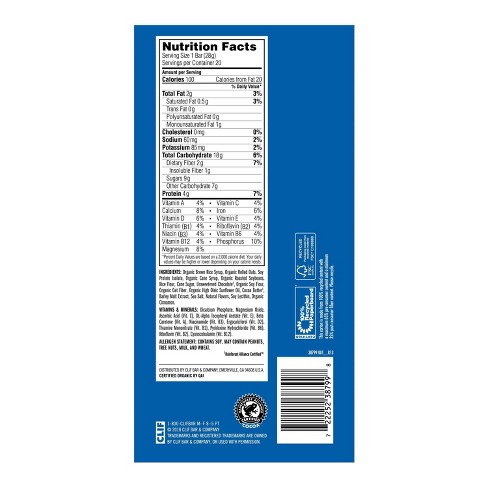 Clif bar nutrition label. Whether youre on a 150 mile ride or exploring a new trail this bar is built to sustain your adventure. Trademarks are owned by clif bar company or used with permission. Try a bag of mixed nuts instead which has similar amounts of.