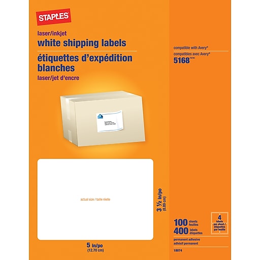 Staples 3 1 2 X 5 Inkjet Laser Shipping Labels White 400 Box